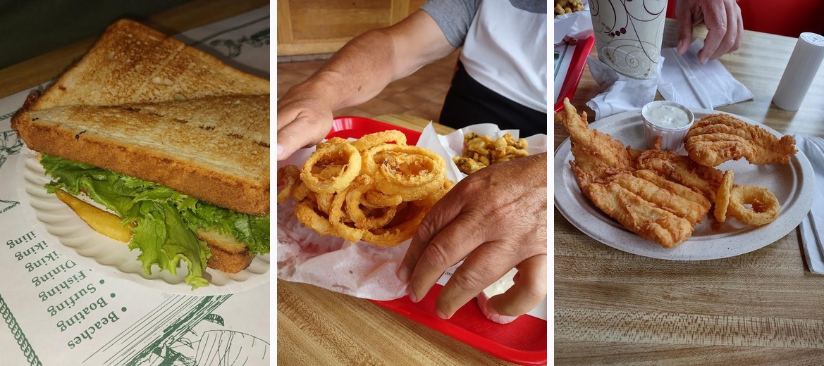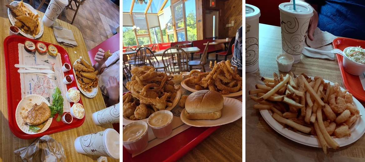 The Weatherdeck serves a variety of American dishes, particularly focusing on seafood. You can find delicious fried seafood, burgers, and tasty ice cream.