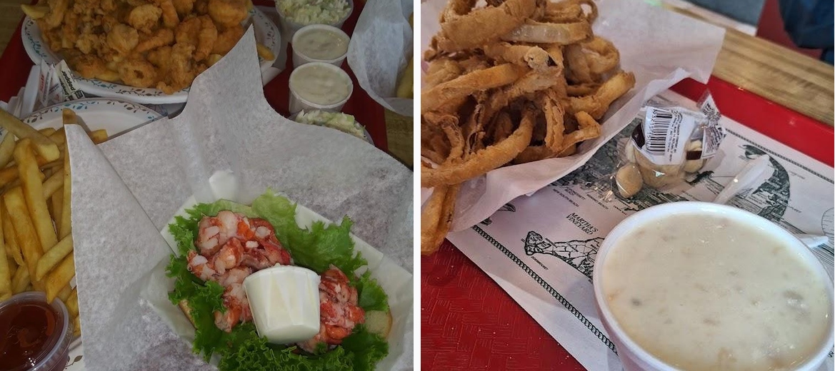 Definitely try the Lobster Roll and the Fish & Chips. The onion rings and clam strips also come highly recommended. Don't forget to grab a dessert to finish your meal!